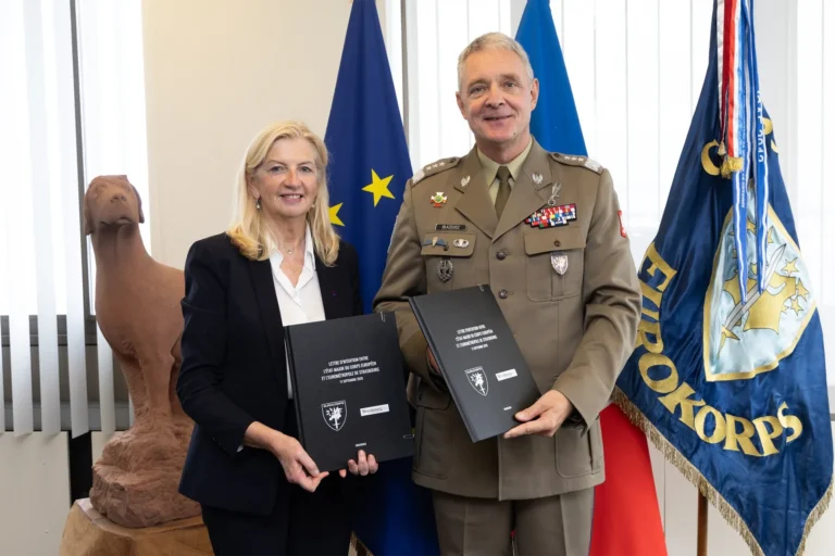 On Thursday, 22 May 2025, Eurocorps and the City of Strasbourg marked a landmark moment in their longstanding relationship with the signing of a new Partnership Agreement, coinciding with the 33rd anniversary of Eurocorps’ presence in Strasbourg. The official ceremony, held at Headquarters Eurocorps, brought together Lieutenant General Piotr Błazeusz and Mayor Jeanne Barseghian in a celebration of unity, civic engagement, and a shared commitment to the future of Europe.