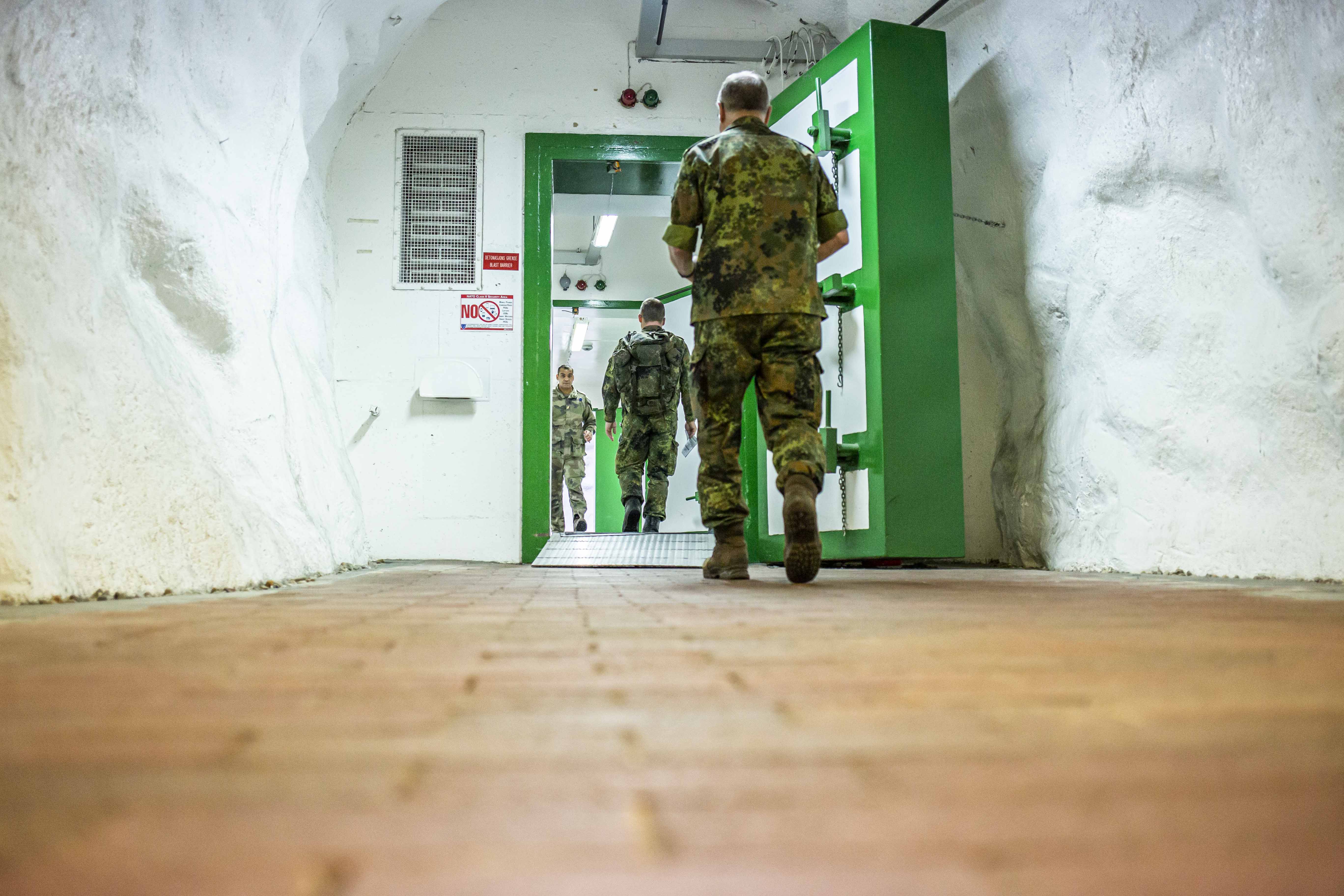 Before things can get underway, soldiers must be in-processed, as NATO calls it. This means checking security papers, paying for food and accommodation and last but not least, a walking tour of the bunker. Because the stately building is not the training area: that lies beneath many meters of solid rock.