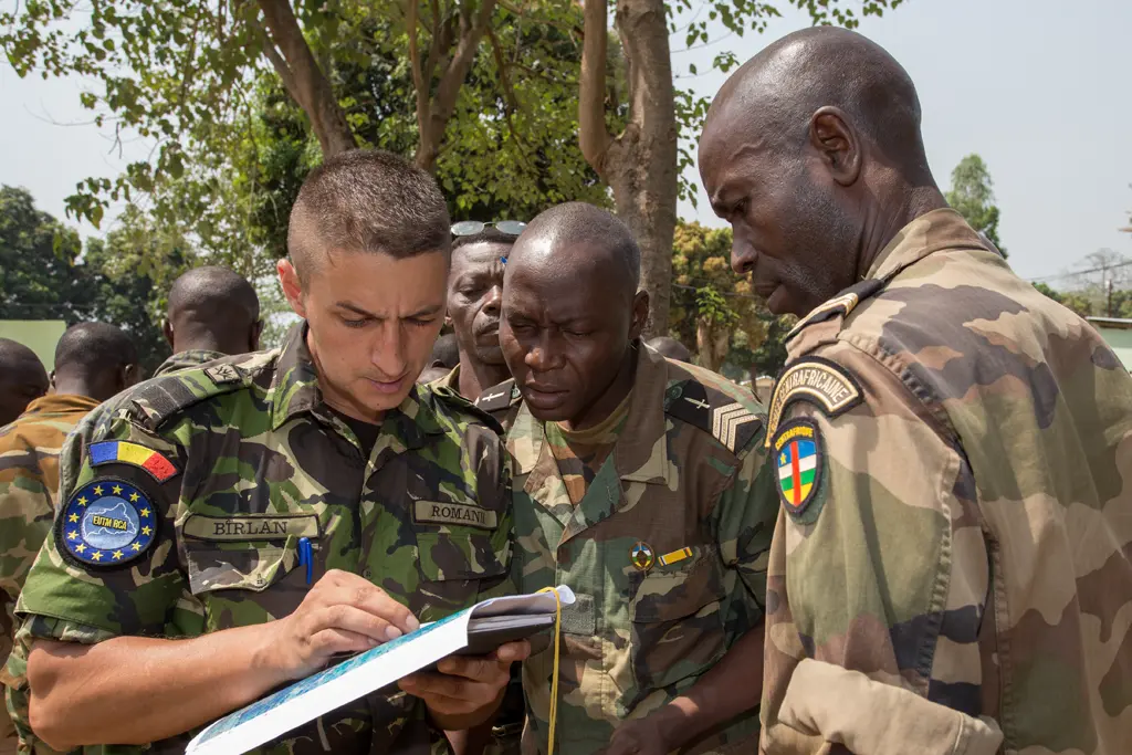 The first rotation of the European Union Training Mission in the Central African Republic (EUTM-RCA) was launched on 16 July 2016 at the request of the Central African government. The mission’s primary objective was to support the development of a modern, effective, credible, ethnically balanced, and democratically accountable Central African Armed Forces (FACA), following an approach similar to that used in Mali. Eurocorps provided the first three rotations of the new EUTM-RCA. With around key personnel under the leadership of a brigadier general, Eurocorps served a central role in establishing the mission.